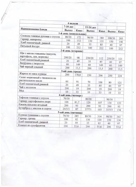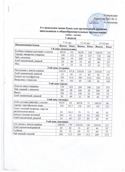 2021- 2022 уч.год.Четырехнедельное перспективное меню