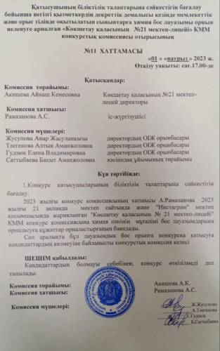 Коммунальное государственное учреждение "Школа-лицей №21 города Кокшетау отдела образования по городу Кокшетау управления образования Акмолинской области"