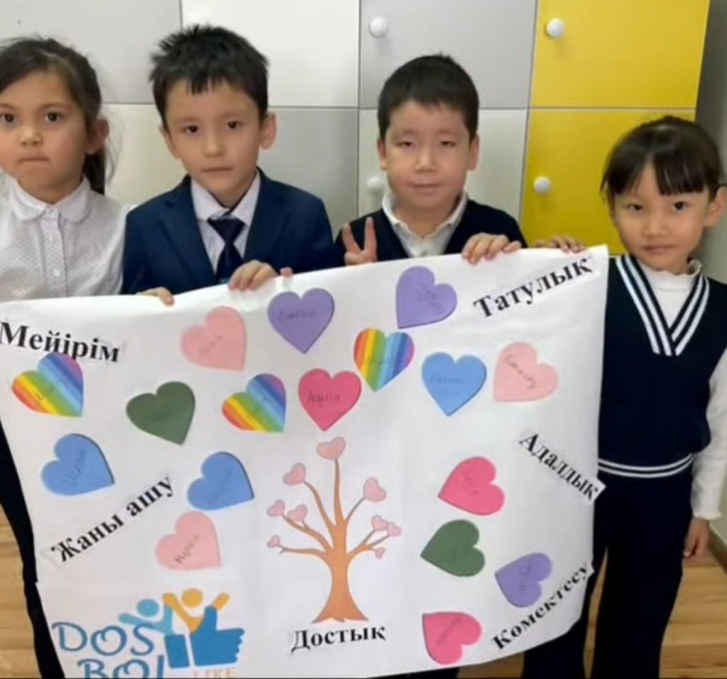 Оқушылар арасында достық, мейірім және бір-біріне қолдау көрсету құндылықтарын қалыптастыру.«ДосболLike» бағдарламасы аясында «Достық ағашы» жұмысын жүргізу арқылы 1 «А» сыныбының оқушыларына достықтың маңызын түсіндіру, бір-біріне жылы сөз айтуға,...