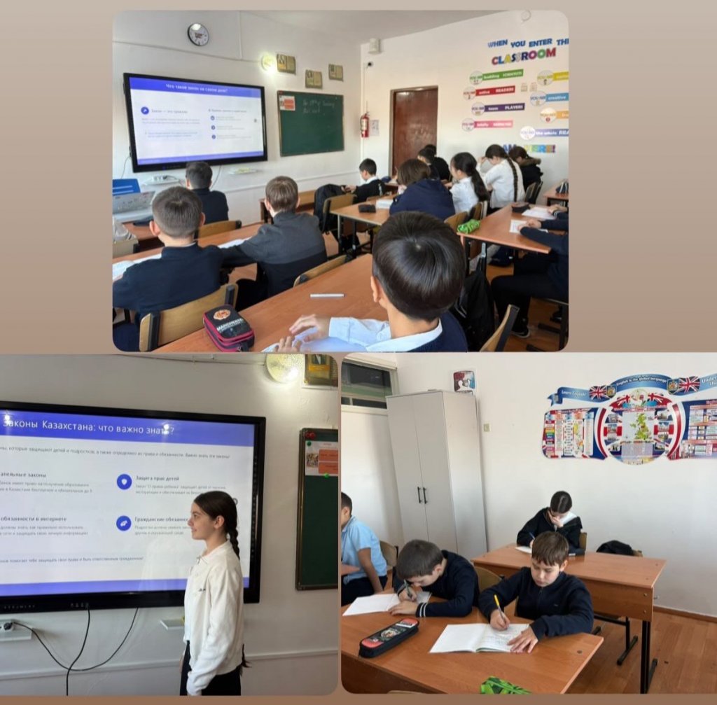 Мектебіміздің 8 «Б» сыныбында «Жастардың басты құндылығы – тәртіп пен жауапкершілік» тақырыбында мектеп инспекторының қатысуымен мазмұнды құқықтық сағат өтті.